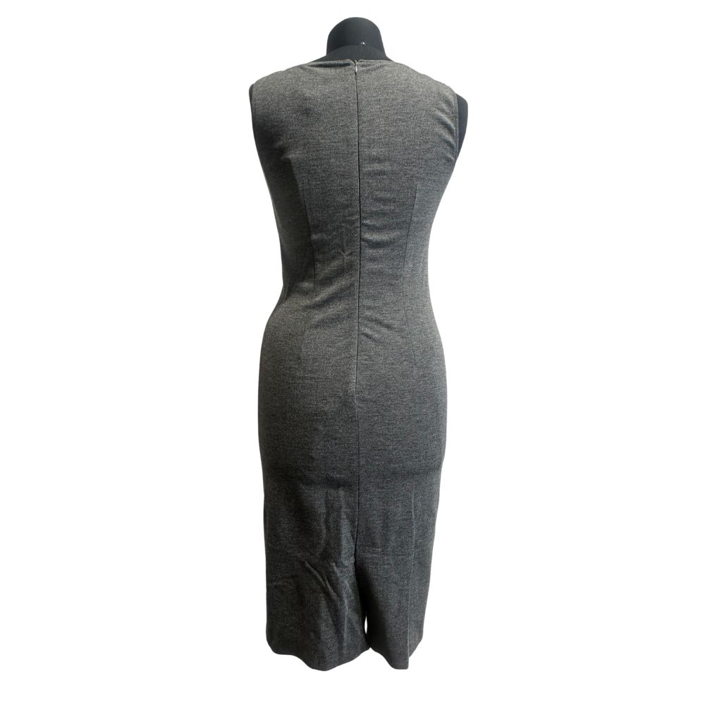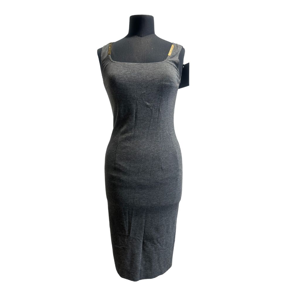 Tubino color grigio in jersey con applicazioni dorate sulla scollatura.