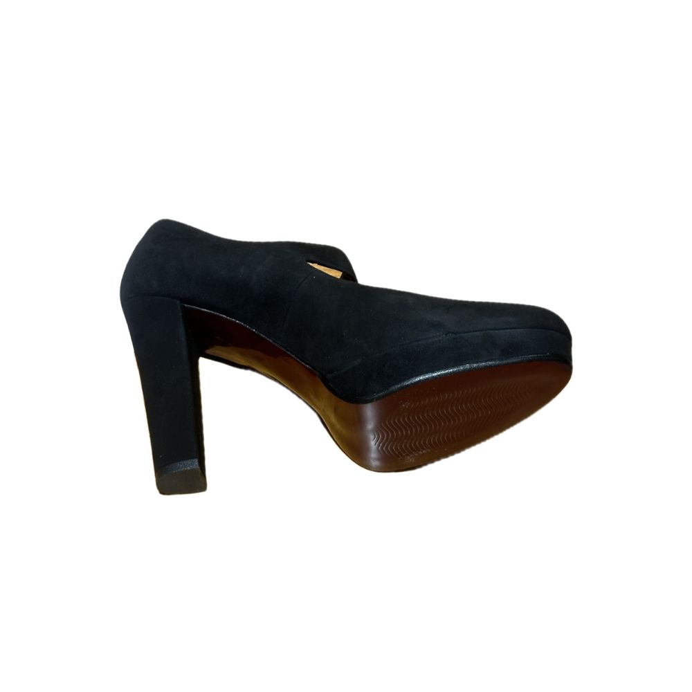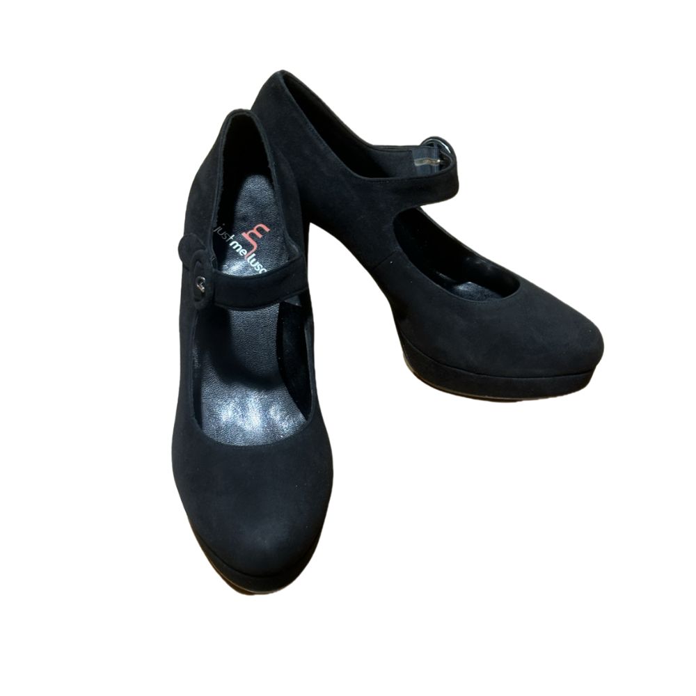 decolleté melluso in velluto nero con cinturino. tacco laminato alto 11 cm inclusi 2 cm di plateau, fodera interna in ecopelle, suola thunit. collezione autunno/inverno