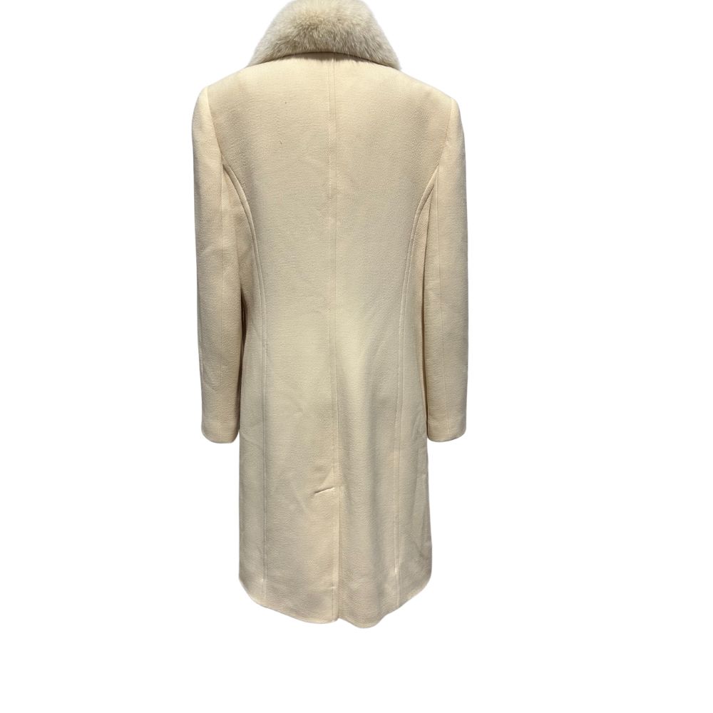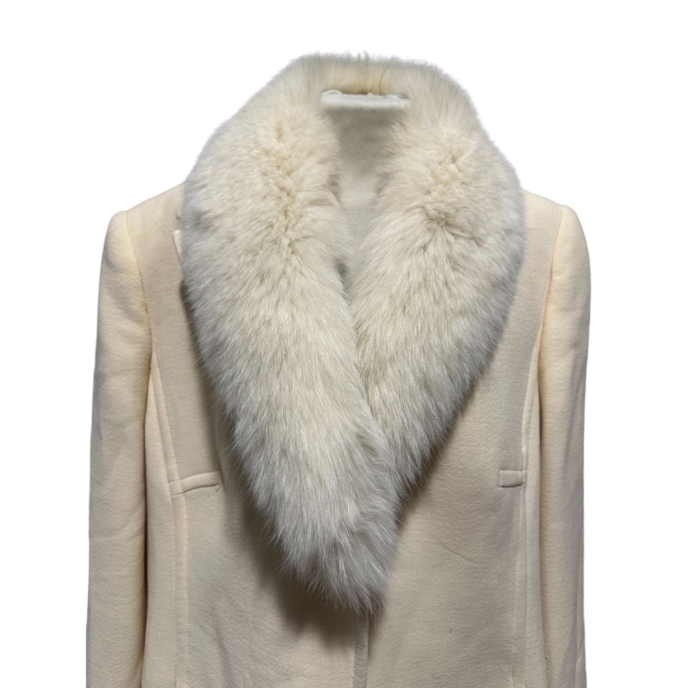 Elegante e caldo, questo cappotto al 92% di lana vergine, è dotato di un collo di volpe bianca, rimovibile.